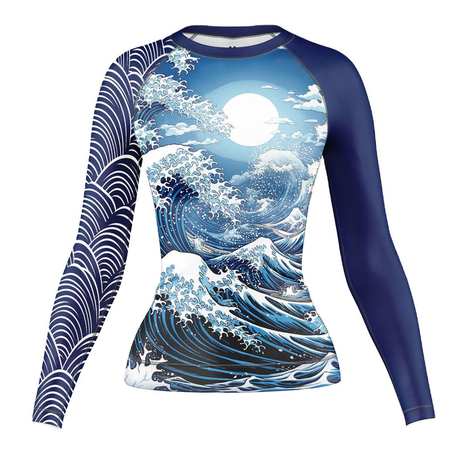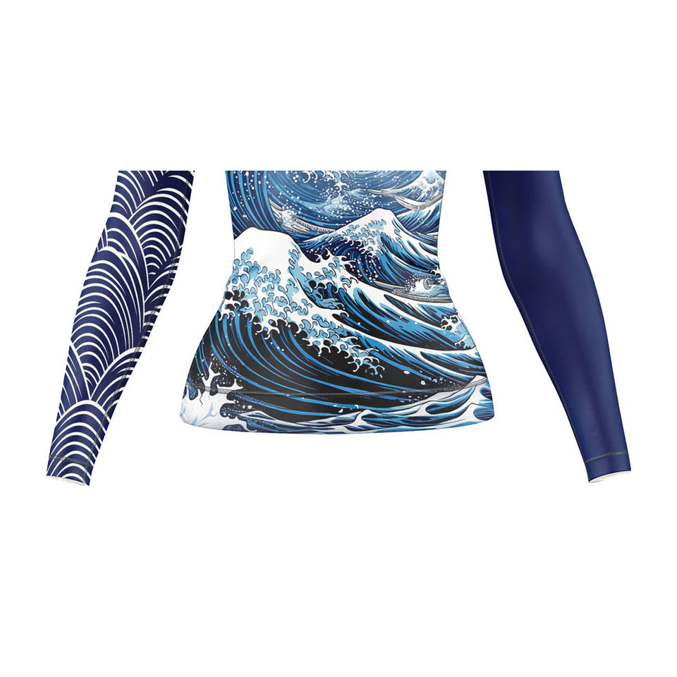 เสื้อแรชการ์ดผู้หญิง ระบายอากาศได้ดี แขนยาว แห้งเร็ว ป้องกันรังสียูวี ผลิตจากผ้าสแปนเด็กซ์/โพลีเอสเตอร์ เหมาะสำหรับเล่นเซิร์ฟ ว่ายน้ำ ออกกำลังกาย และฝึกซ้อม