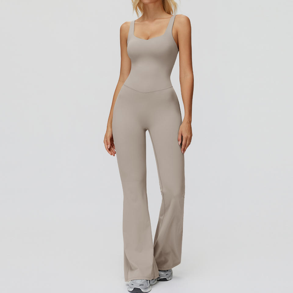 จั๊มสูทแขนกุดออกกำลังกายสายสปาเก็ตตี้ของผู้หญิงสำหรับเล่นโยคะฟิตเนสแบบไขว้ด้านหลังระบายอากาศได้ออกแบบได้ตามต้องการ