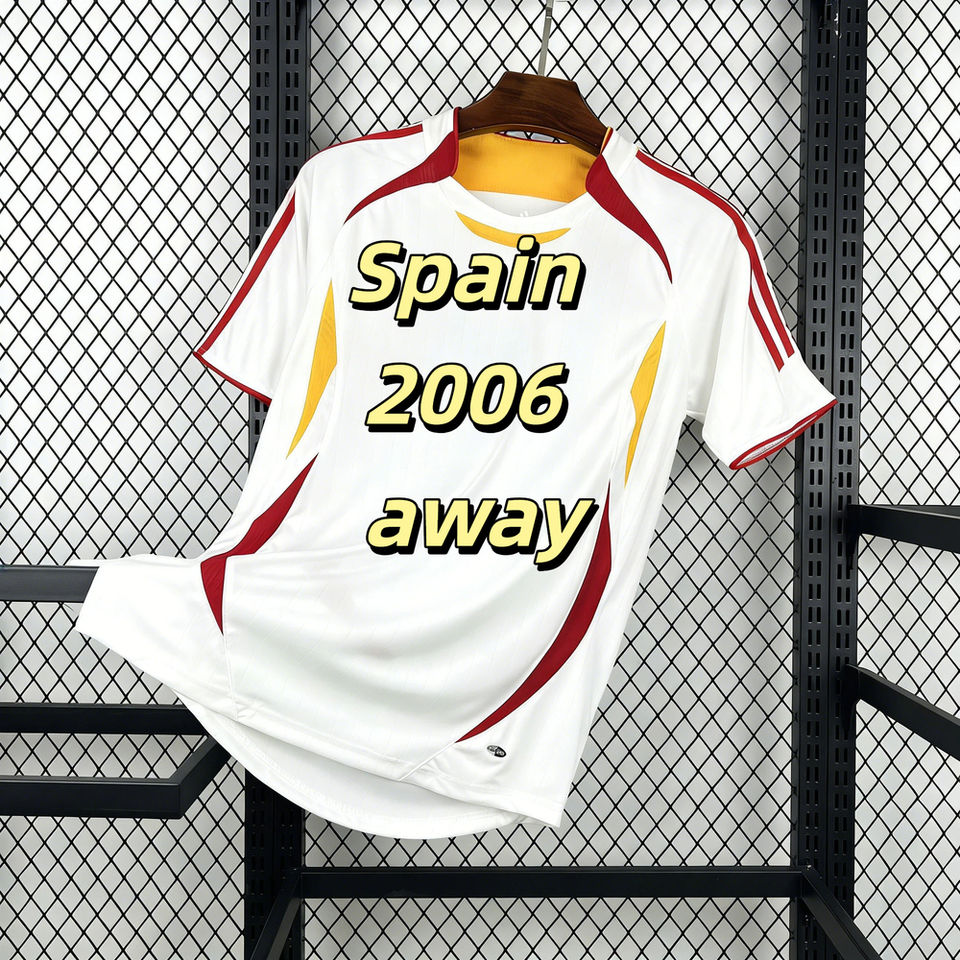 เสื้อฟุตบอลทีมเยือนสเปนปี 2006 แบบย้อนยุค แขนสั้น ระบายอากาศได้ดี รุ่น 1.1 สำหรับฤดูร้อน ขายส่งจากโรงงาน