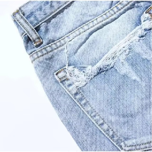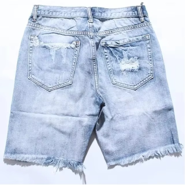 กางเกงยีนส์ขาสั้นทรงตรงสไตล์ลำลองสำหรับฤดูร้อน ระบายอากาศได้ดี สีฟ้าอ่อน ขาดๆ เซอร์ๆ แฟชั่นแนวสตรีทเท่ๆ สำหรับผู้ชาย