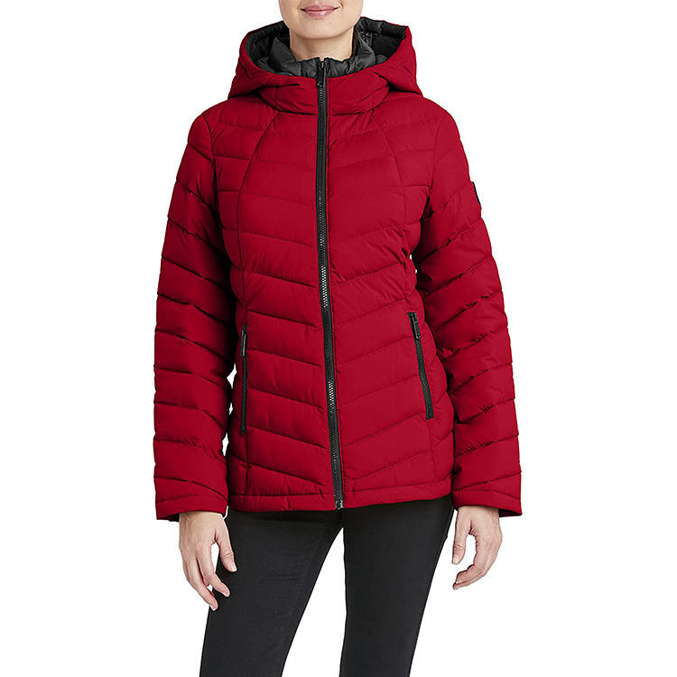 แจ็คเก็ตขนเป็ดมีฮู้ดสำหรับผู้หญิงมีซิปแบบลำลองกันลมระบายอากาศออกแบบได้ตามต้องการ