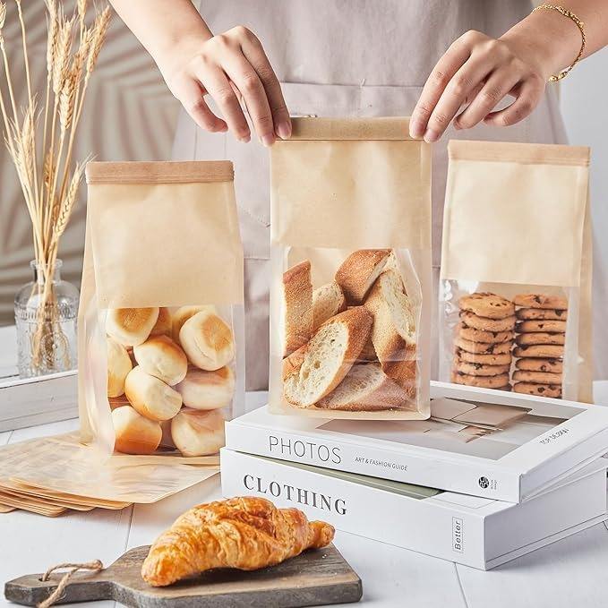 กระเป๋ากระดาษคราฟท์สำหรับใส่ขนมปังและขนมปังปิ้งสีน้ำตาลแบบสั่งทำสำหรับใส่ขนมปังคุกกี้