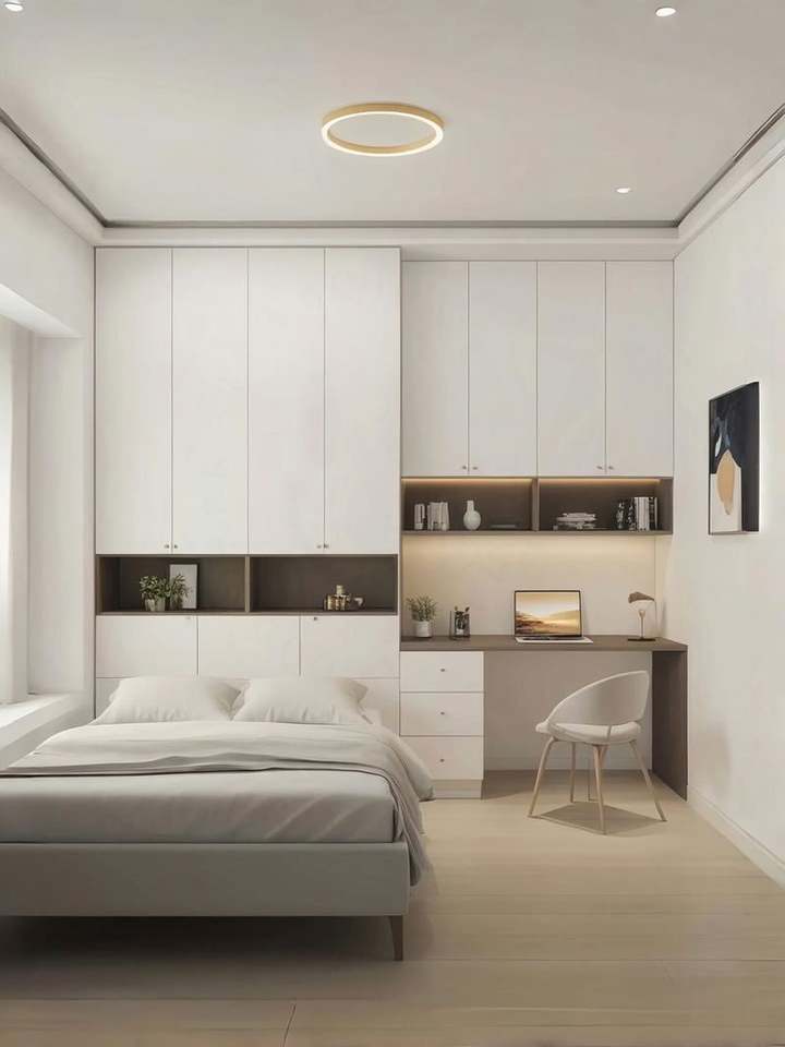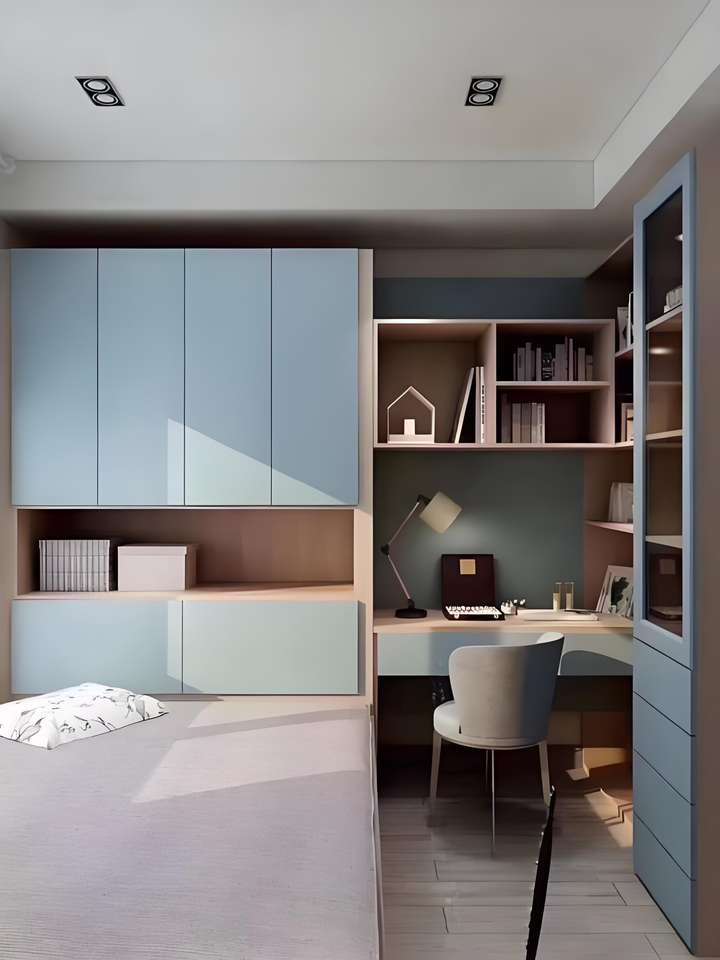 เตียงสองชั้นแบบคู่พร้อมตู้ตั้งโต๊ะขนาดเล็กแบบบูรณาการสำหรับตู้เสื้อผ้าภายในบ้านตามต้องการ