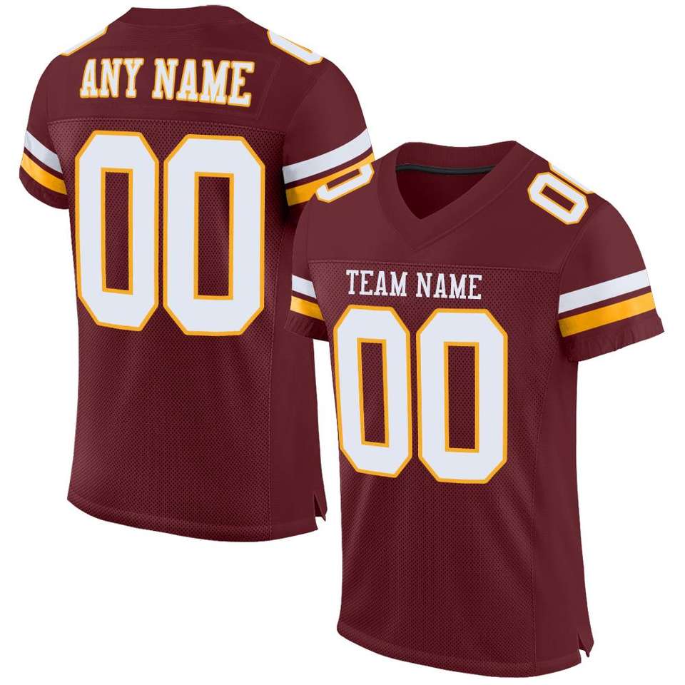 เสื้อฟุตบอลแบบคลาสสิกสีเบอร์กันดี ขาว-ทอง แท้ พร้อมลายตาข่าย