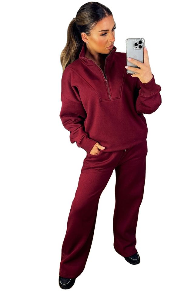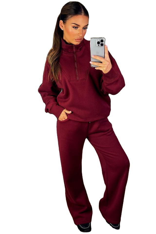 เสื้อสเวตเชิ้ตขนแกะยาวสีเบอร์กันดีสำหรับผู้หญิง พร้อมงานปัก คอกลม แขนจั๊มพ์ สำหรับฤดูใบไม้ร่วงและฤดูหนาว เหมาะสำหรับออกกำลังกาย มีโลโก้ด้านหน้าแบบมีฮู้ด