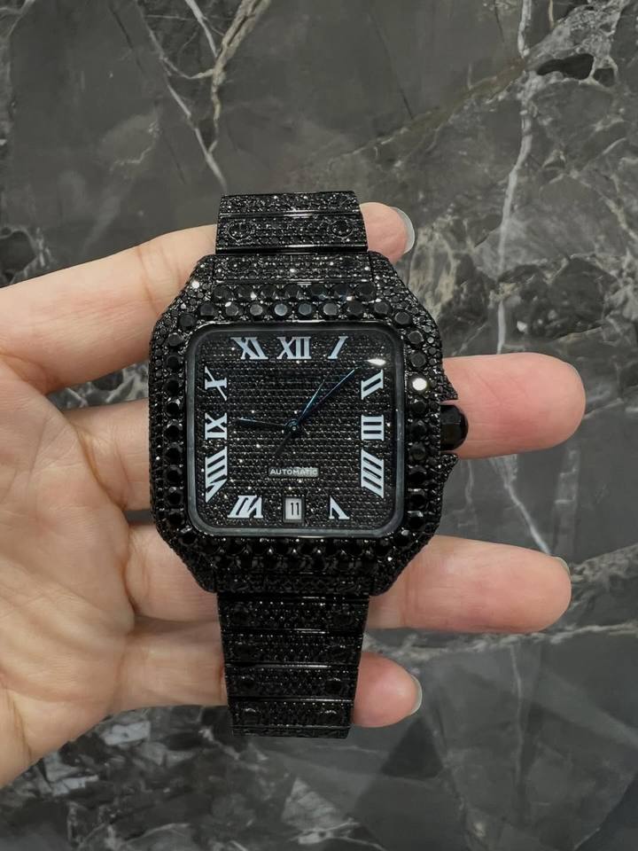 นาฬิกาแฟชั่นทรงเหลี่ยมแบบเต็มหน้าปัดประดับเพชรโมซาน พร้อมปฏิทิน ระบบจักรกล ขายส่ง