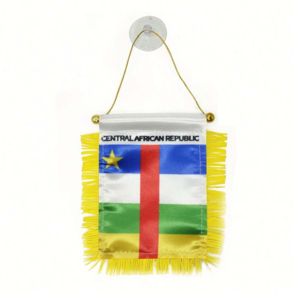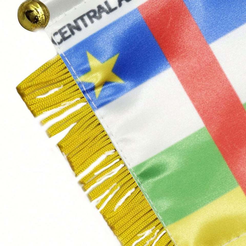 ธงซาตินรูปสามเหลี่ยมขนาดเล็กของสาธารณรัฐแอฟริกากลางแบบกำหนดเอง พร้อมพู่สีเหลือง