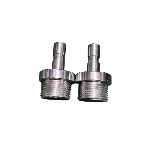 ชิ้นส่วนเหล็กกล้าคาร์บอนกลึงด้วยเครื่อง CNC ตามสั่ง | ชิ้นส่วนเครื่องจักรกลซีเอ็นซีความแม่นยำสูง อะแดปเตอร์เกลียวตัวผู้พร้อมเพลาไพล็อต (แบบไหล่)