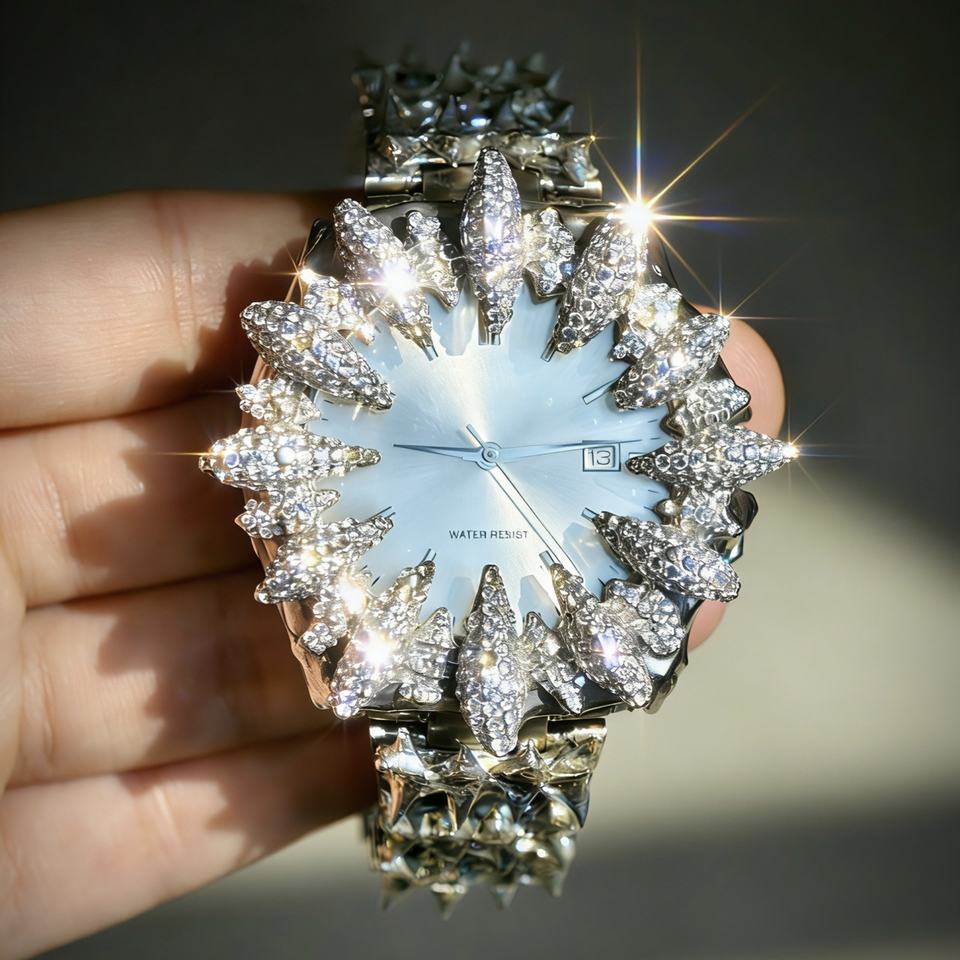 นาฬิกาข้อมือดิจิตอลแบบสปอร์ตธุรกิจ รุ่น Custom CZ Iced ดีไซน์ Alabaster Y2K ระบบควอตซ์ ตัวเรือนสแตนเลสสตีล สไตล์โกธิค รีเมค สำหรับผู้ชาย กันน้ำ