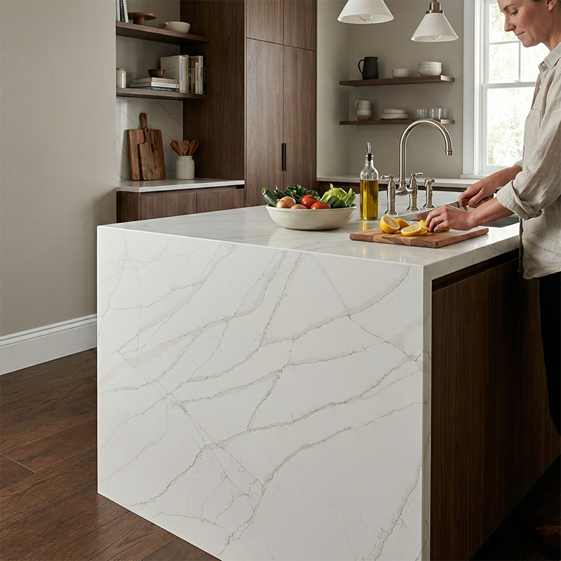 เคาน์เตอร์ควอตซ์ลายแคลาคัตต้าลาซาแบบกำหนดเองสำหรับห้องครัวที่อยู่อาศัย ห้องน้ำ และตู้ห้องน้ำ