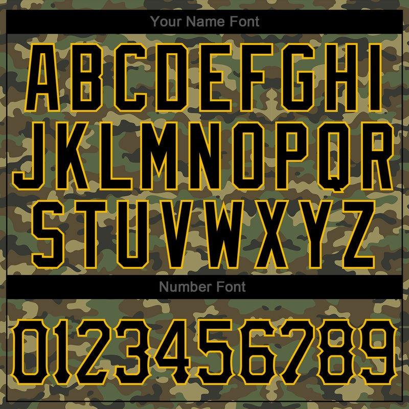 เสื้อเบสบอลลายพรางสีดำ-ทอง พิมพ์ลาย ระบายอากาศได้ดี ผลิตจากโพลีเอสเตอร์ 100% ของแท้ แสดงความเคารพต่อการรับใช้ชาติ