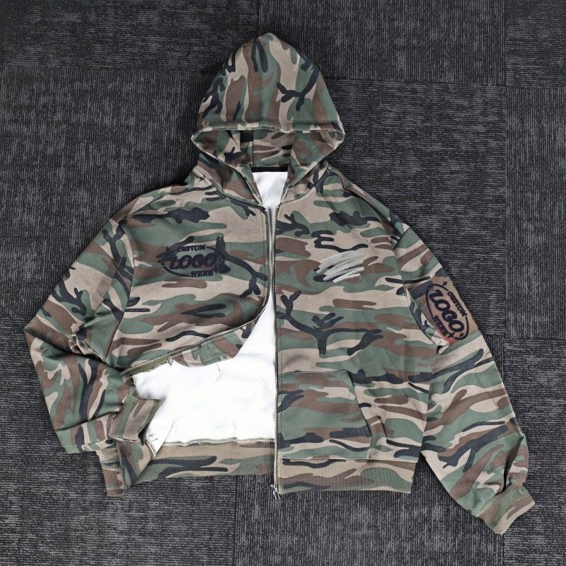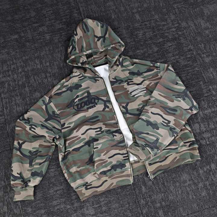 เสื้อฮู้ดดี้ลายพรางแบบกำหนดเองสำหรับผู้ชาย พิมพ์โลโก้คุณภาพสูง แฟชั่นแบบซิป ดีไซน์ทำเก่า สำหรับผู้ชาย จากผู้ผลิต