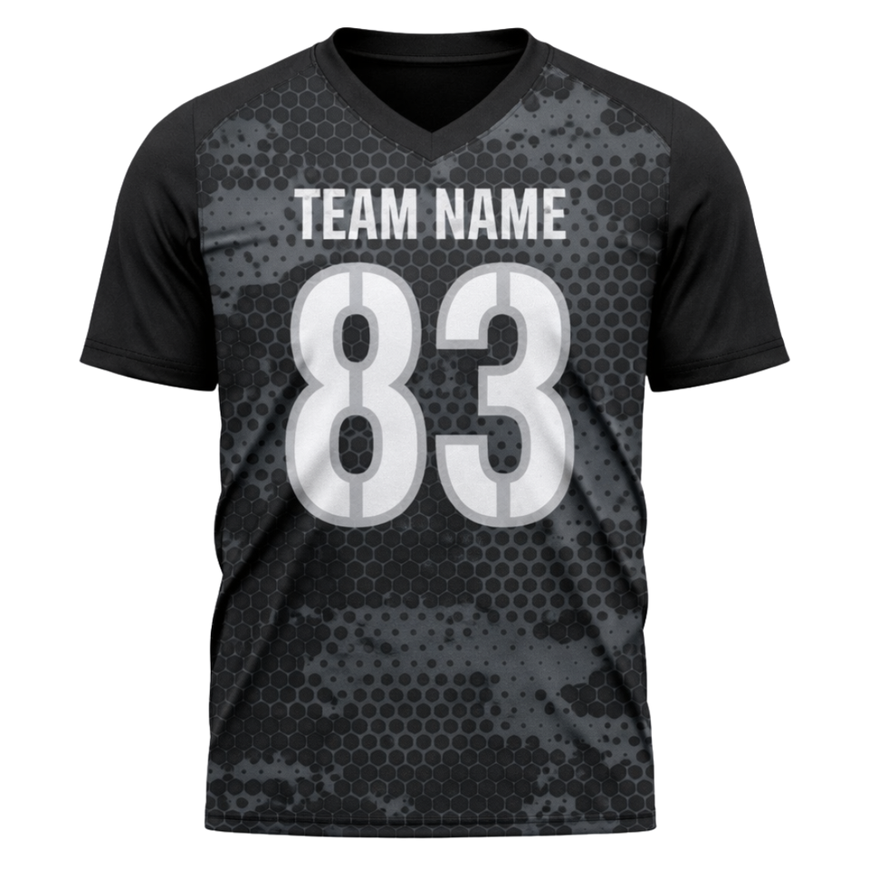 เสื้อเจอร์ซีย์ฟุตบอลลายพรางแบบซับลิเมชั่น คอวี ระบายอากาศได้ดี ผลิตจากโพลีเอสเตอร์ สำหรับทีม รับผลิตแบบ OEM ODM ขายส่งจำนวนมาก