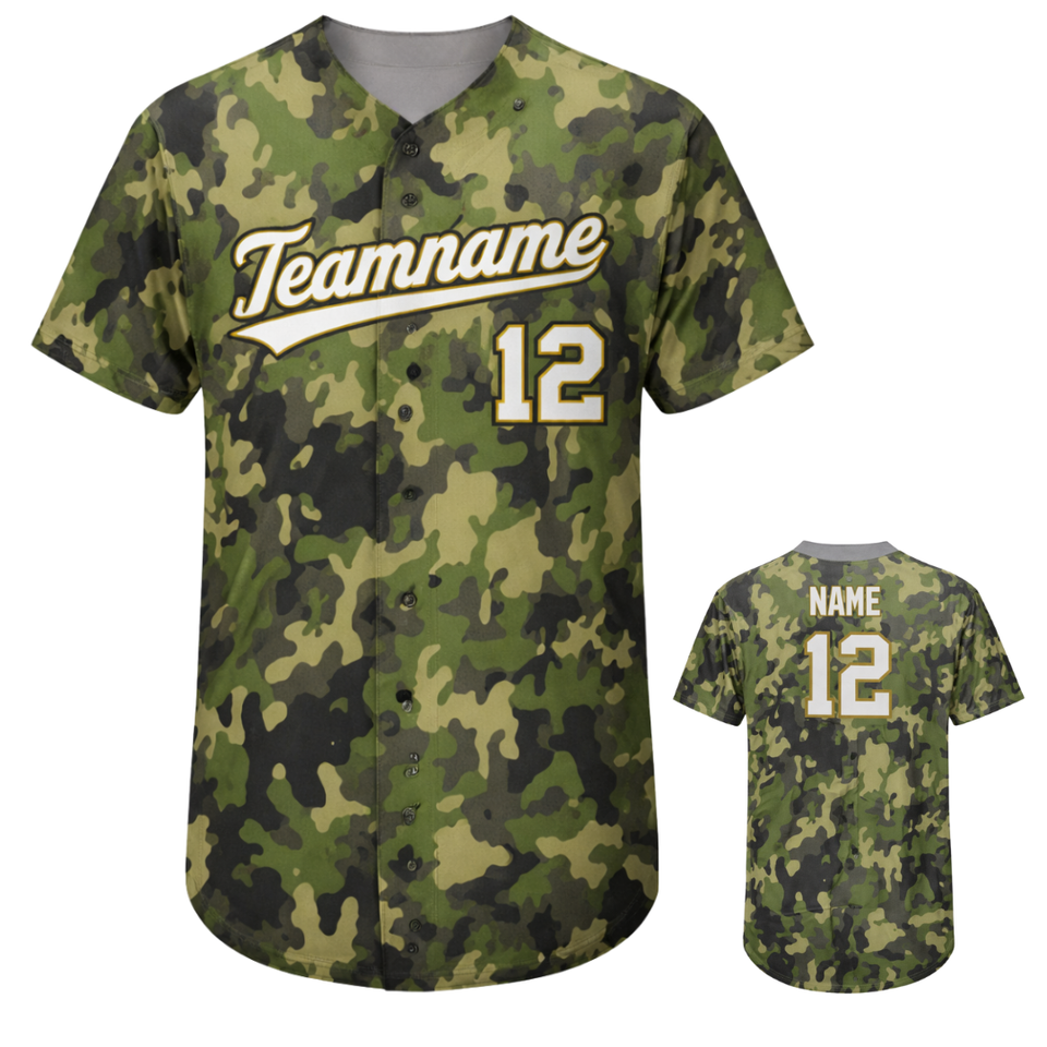 เสื้อเบสบอลลายพรางแบบกำหนดเองพร้อมรายละเอียดผู้เล่นส่วนตัว ผ้าคุณภาพสูงและผลิตได้อย่างรวดเร็ว