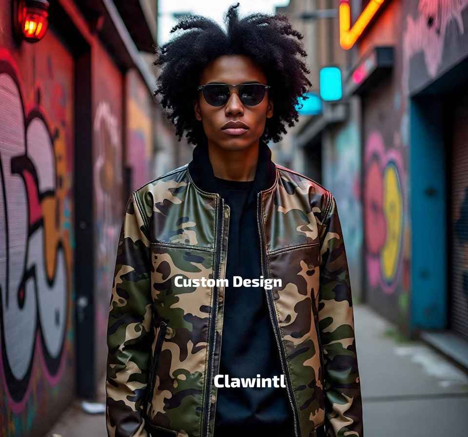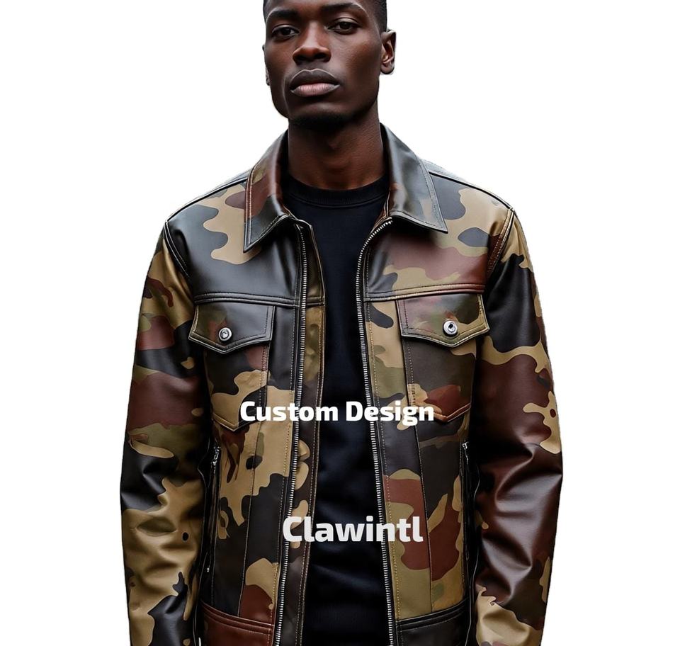 เสื้อแจ็คเก็ตหนังลายพรางที่กำหนดเองโดยศิลปิน | งานวาดด้วยมือและออกแบบตามสั่ง