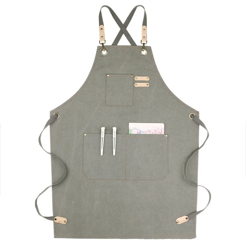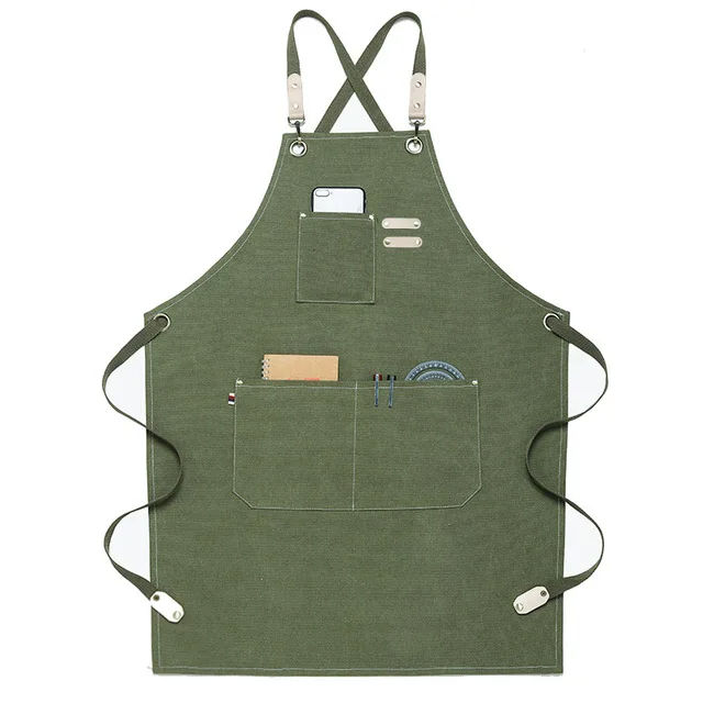 ผ้ากันเปื้อนผ้าใบแบบกำหนดเองผ้ากันเปื้อนผ้าฝ้ายปรับได้ชุดทำงานกันน้ำพิมพ์ลายกำหนดเองพร้อมโลโก้