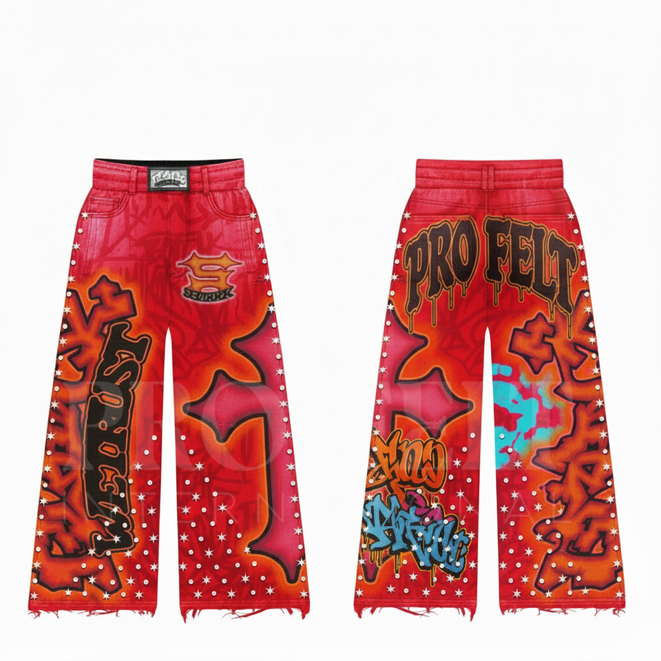 กางเกงจ็อกกิ้งขากว้างผ้าแคนวาสลายสตรีทอาร์ตประดับดาว พิมพ์ลายด้วยความร้อน ผ้าฝ้าย 100% แห้งเร็ว ระบายอากาศได้ดี