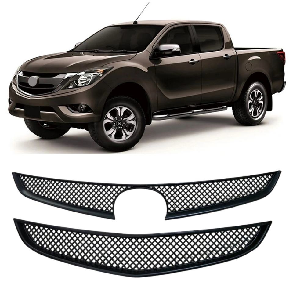 กระจังหน้า ABS สีดำ+เงิน รุ่น KQD สำหรับรถ Mazda BT-50 ติดตั้งง่าย