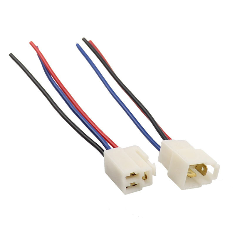 ขั้วต่อสายไฟรถยนต์และมอเตอร์ไซค์แบบกำหนดเอง ขนาด 6.3 มม. ปลั๊กสี่เหลี่ยม ชิ้นส่วนพลาสติก ABS ขั้วต่อ 3 ขา ชุดสายไฟ