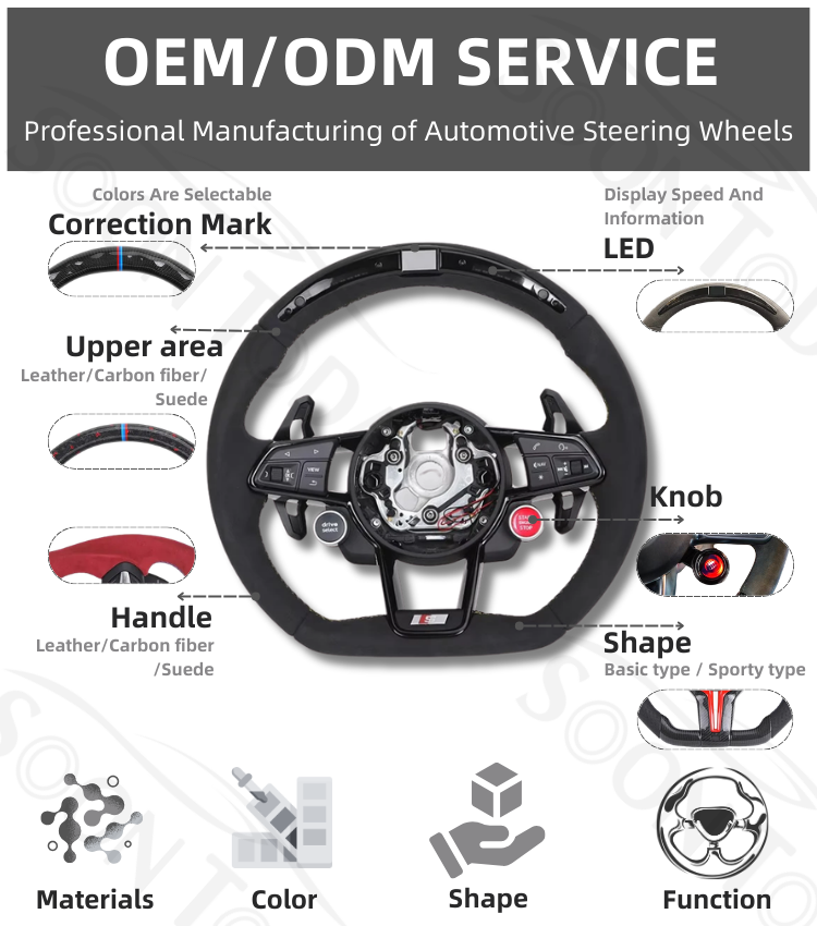 พวงมาลัยคาร์บอนไฟเบอร์แบบกำหนดเองครึ่งหนึ่งหุ้มอัลคันทาร่าสำหรับ Audi RS A3 A4 A5 A6 A7 A8 C7 C8 S3 S4 S5 B6 B8 B9 RS3 RS4 RS5 Q3 Q5 Q7 Q8