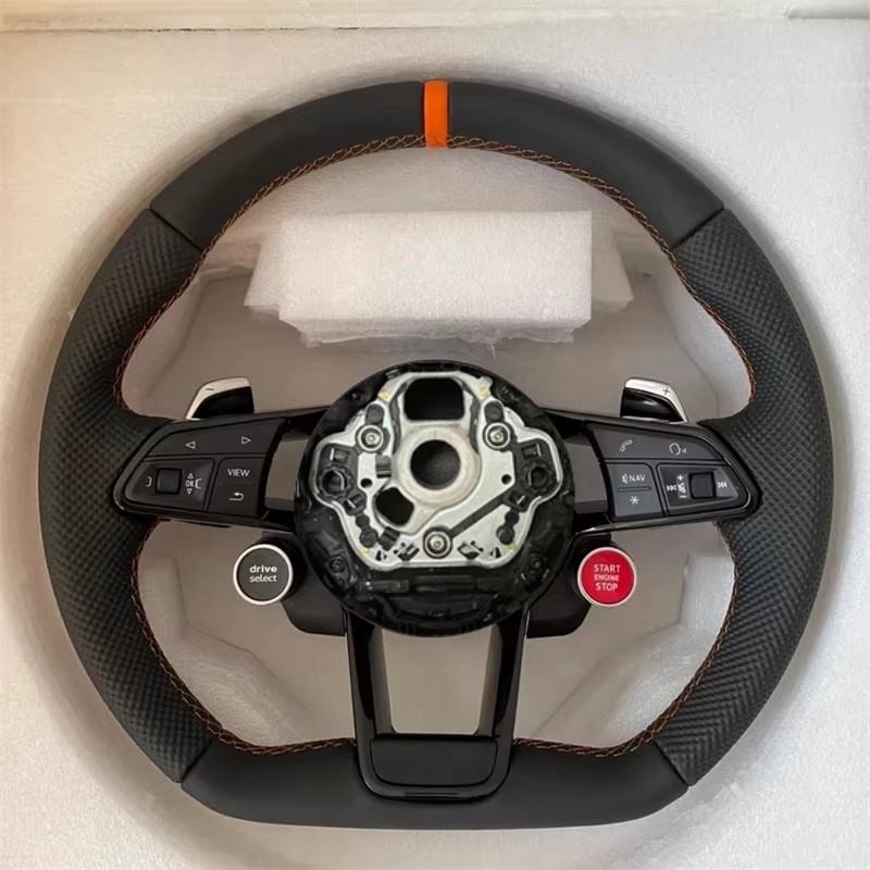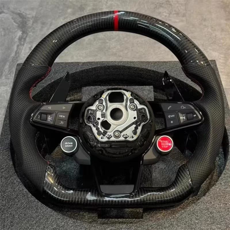 พวงมาลัยคาร์บอนไฟเบอร์แบบกำหนดเองสำหรับรถ Audi R8 A5 RS Q5 TT R8 A4 Q6 B8 B9 S4 RS6 A6 C7 A4L A5L Q7อุปกรณ์เสริมสำหรับพวงมาลัยรถ