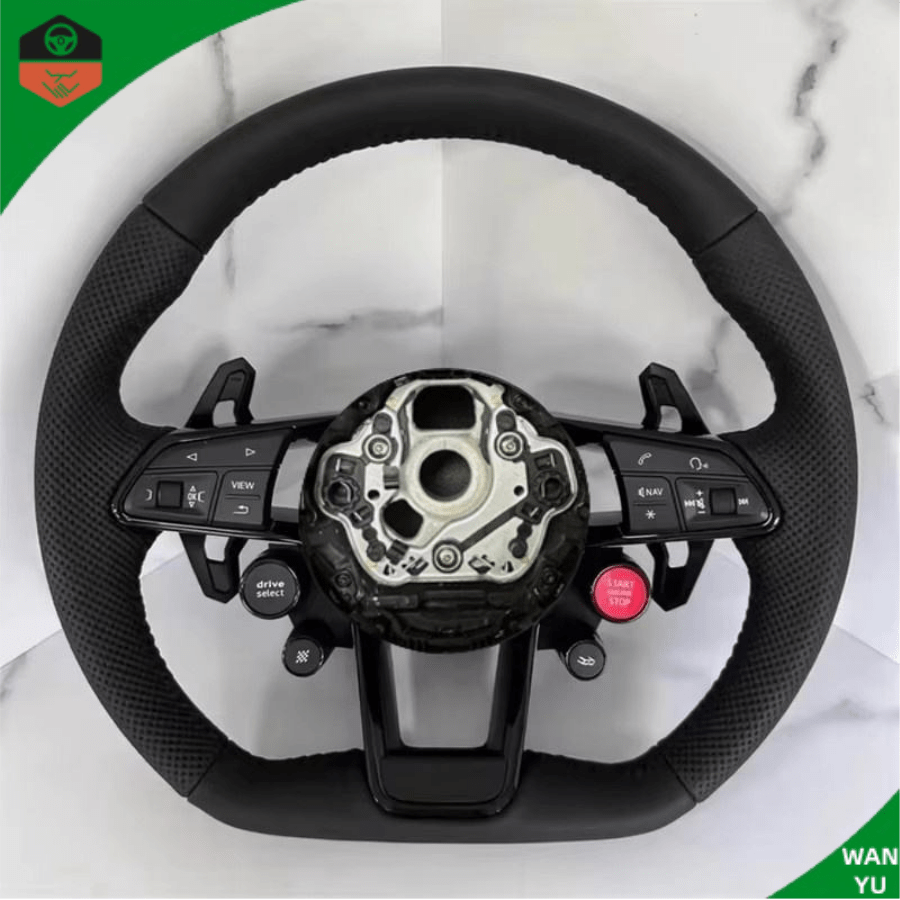 พวงมาลัยคาร์บอนไฟเบอร์แบบกำหนดเองสำหรับรถ Audi R8 A5 RS Q5 TT R8 A4 Q6 B8 B9 S4 RS6 A6 C7 A4L A5L Q7อุปกรณ์เสริมสำหรับพวงมาลัยรถ