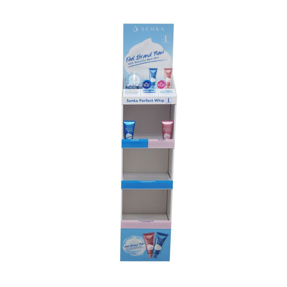 Custom Cardboard Display Stand Floor Cosmetics Shelf Facial Cleansers Retail Paper Floor Standing Display Cardboard Display Case