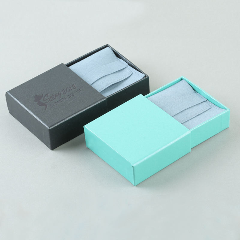 กล่องใส่เครื่องประดับแบบลิ้นชักทำจากกระดาษแข็งแบบกำหนดเอง พร้อมถุงไมโครไฟเบอร์สำหรับใส่ต่างหู สร้อยคอ กล่องเครื่องประดับแบบเลื่อนรักษ์โลกพร้อมถุงกำมะหยี่