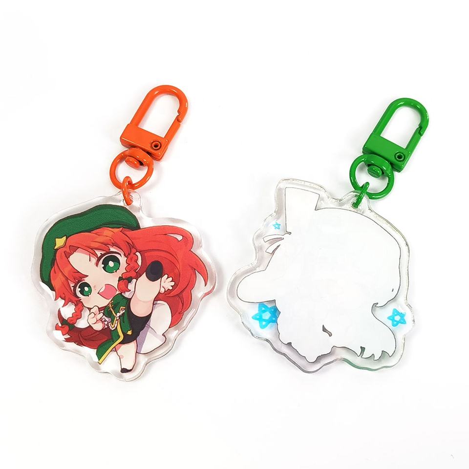 พวงกุญแจอะคริลิกอะนิเมะทำจากเรซินอีพ็อกซี่ใสพิมพ์ลายการ์ตูนแบบสองด้านพร้อมกลิตเตอร์
