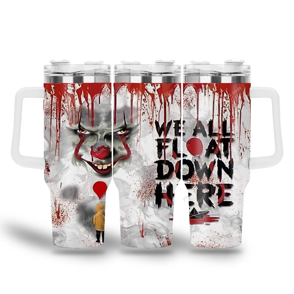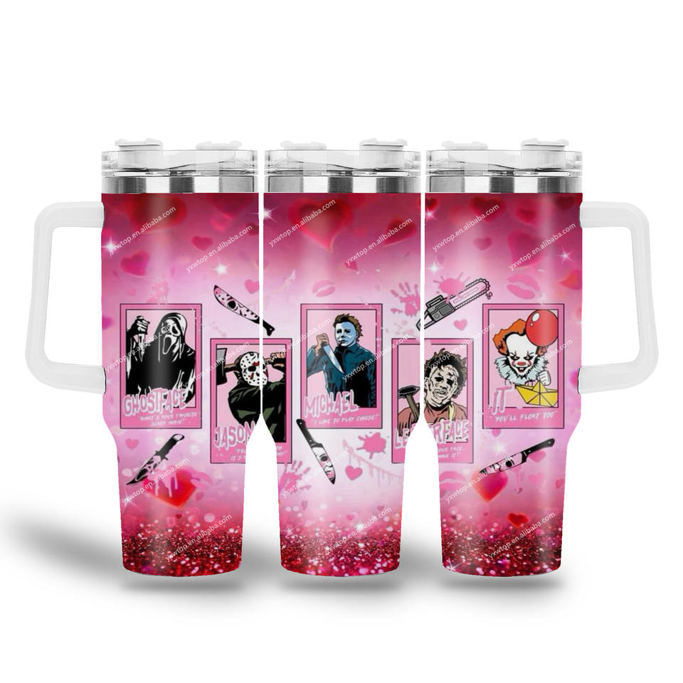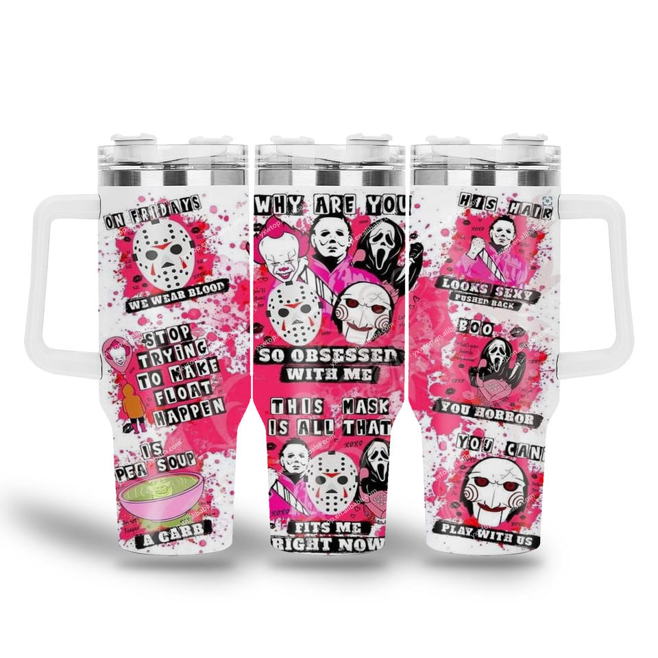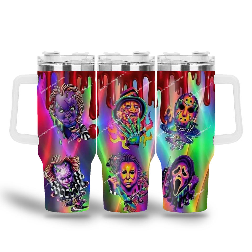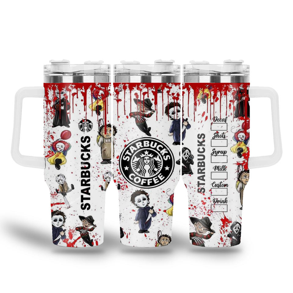Custom Cartoon Halloween Scary Movie Blood Knife Horror Character 40oz Vacuum Insulated Tumbler Iced Coffee Car Cup Travel Mug
