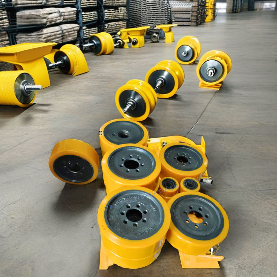 อะไหล่รถยกเหล็กหล่อ PU แบบออกแบบได้ตามต้องการล้อหน้าและล้อหลังพร้อมปลอกเหล็ก