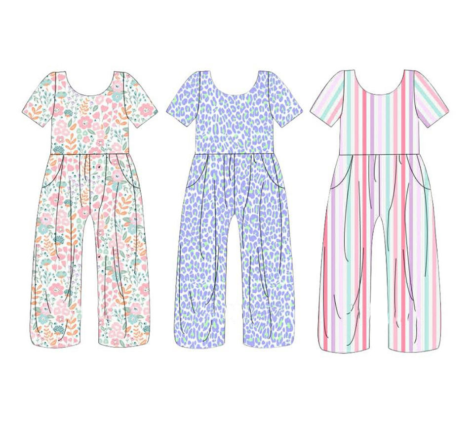 ชุดจั๊มสูทขายาวทรงขากว้างพิมพ์ลายดอกไม้สไตล์ลำลอง ระบายอากาศได้ดี สีสันสดใส สำหรับเด็ก แบบพี่น้องเข้าชุด ขายส่ง ผ้าฝ้าย 95% สแปนเด็กซ์ 5%