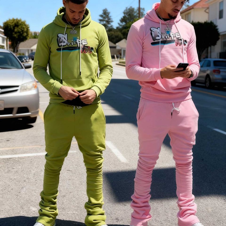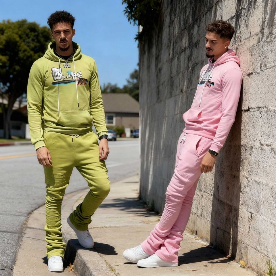 ชุดวอร์มลำลองพิมพ์ลายโลโก้สำหรับผู้ชาย แบบสลิมฟิต สองชิ้น เสื้อฮู้ดและกางเกงขายาว