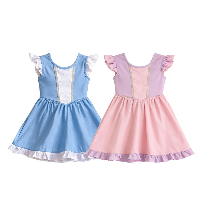 ชุดเดรสเด็กผู้หญิงแขนกุดพิมพ์ลายเจ้าหญิงสไตล์ลำลองผ้าฝ้ายผสมสแปนเด็กซ์ระบายอากาศดี ขายส่งเสื้อผ้าพี่น้อง สไตล์ใหม่