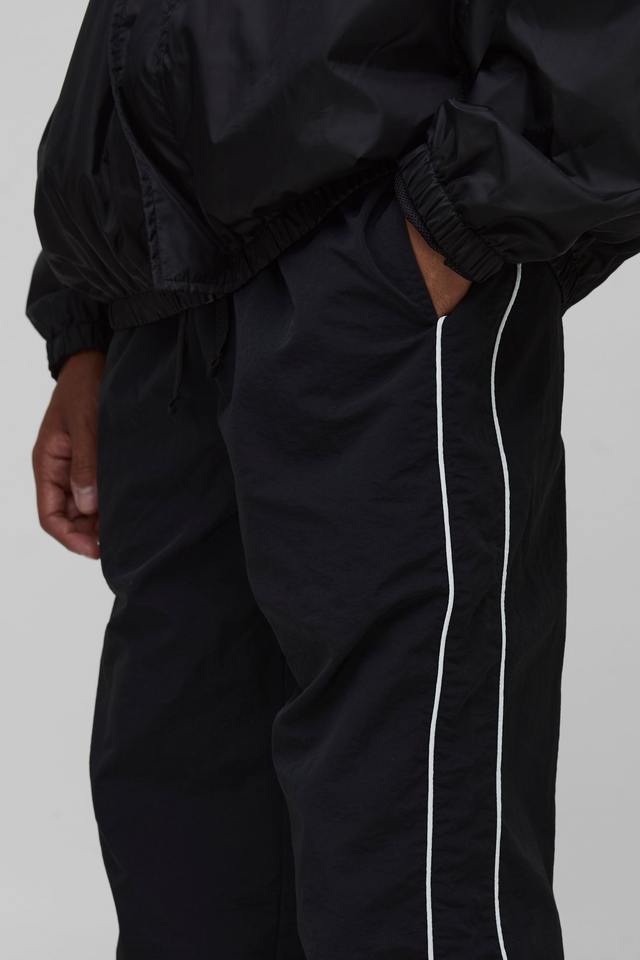 กางเกงแทร็คผ้าแคนวาสหนานุ่มทรงหลวมขากว้างสไตล์ลำลองสำหรับผู้ชาย ล้างสี ทนลม ปักลาย มีเชือกผูก