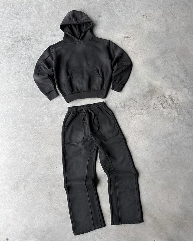 ชุดวอร์มลำลองสำหรับผู้ชายไซส์ใหญ่ ปักลาย ตกแต่งด้วยคริสตัล ซิปฮู้ดดี้ กางเกงขายาวทรงบาน ผ้าฝ้าย 100% ล้างสีแบบแอซิดวอช