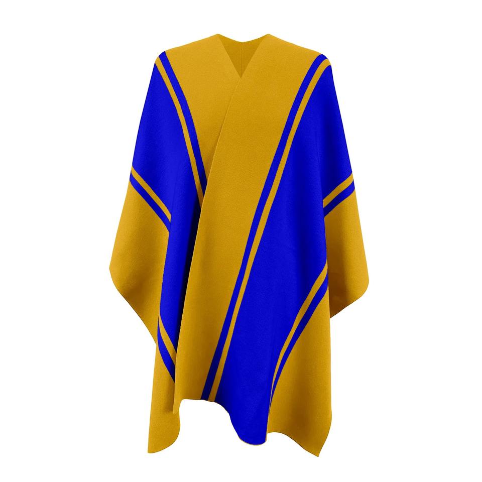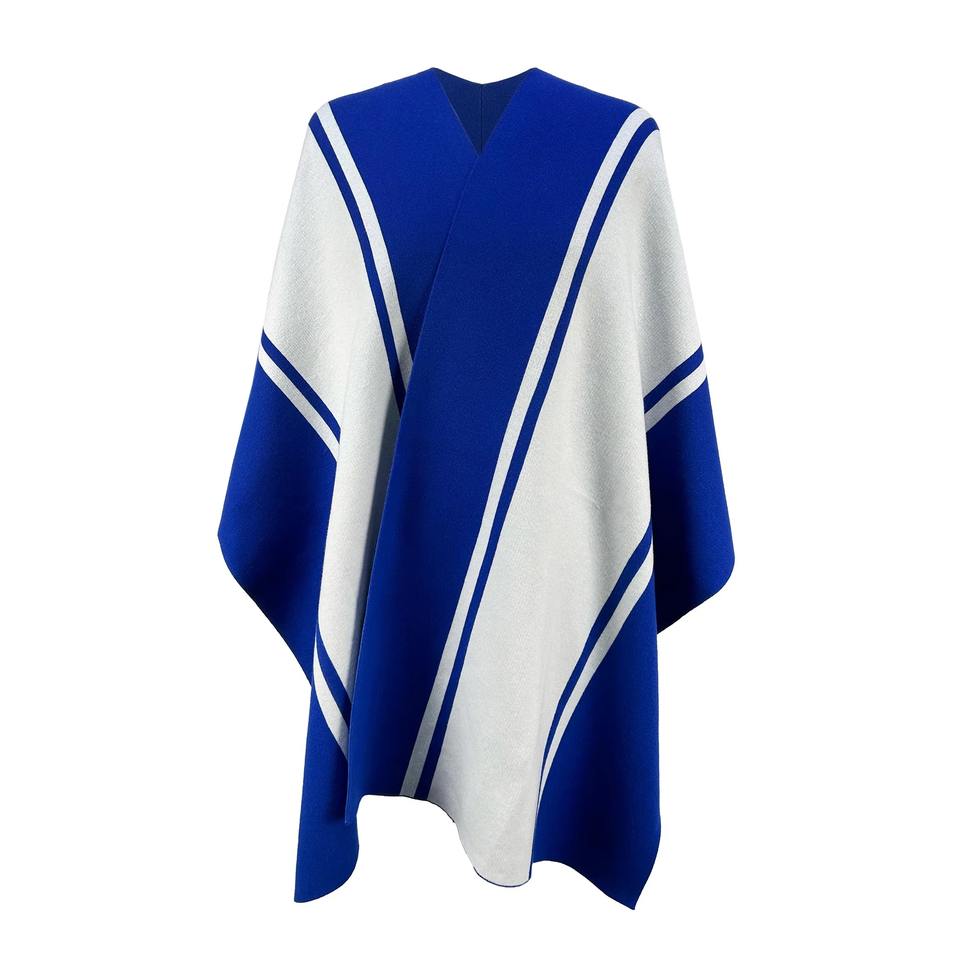 เสื้อคลุมโปงโชผ้าขนสัตว์ยาวแบบสบายๆ สำหรับผู้หญิง เป็นมิตรกับสิ่งแวดล้อม ผ้าถักนุ่มลายทาง ดีไซน์สำหรับใช้ในชีวิตประจำวัน