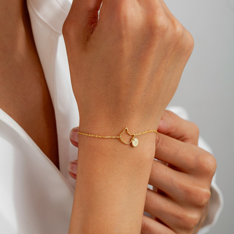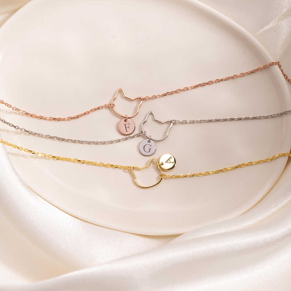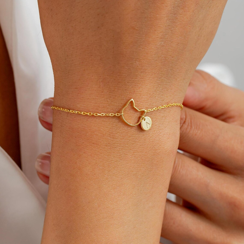 สร้อยข้อมือสแตนเลสสลักอักษรย่อรูปหน้าแมวแบบกำหนดเอง ของขวัญสำหรับคุณแม่แมว คนรักสัตว์เลี้ยง ของขวัญวันแม่