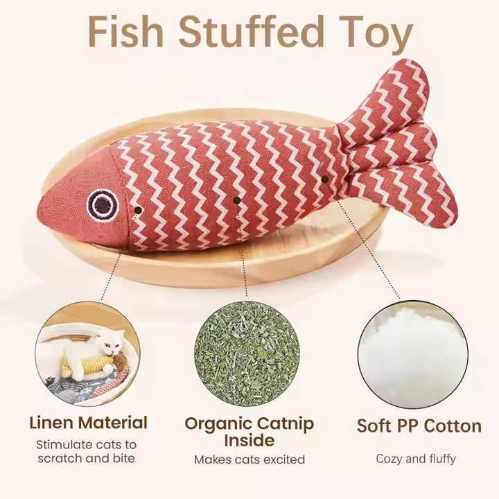 ของเล่นแมวแมวผ้าลินินนุ่มยัดไส้ของเล่นแบบโต้ตอบสำหรับลูกแมวในร่มดีไซน์รูปปลาน่ารักเป็นมิตรกับสิ่งแวดล้อม
