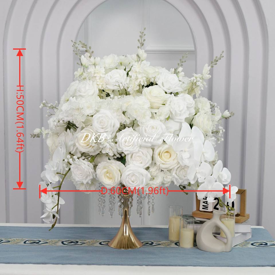 ลูกบอลดอกไม้ประดิษฐ์ประดับโต๊ะงานแต่งงานสีแดงขาวทรงกลมออกแบบได้ตามต้องการ