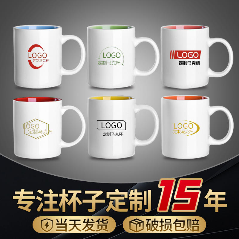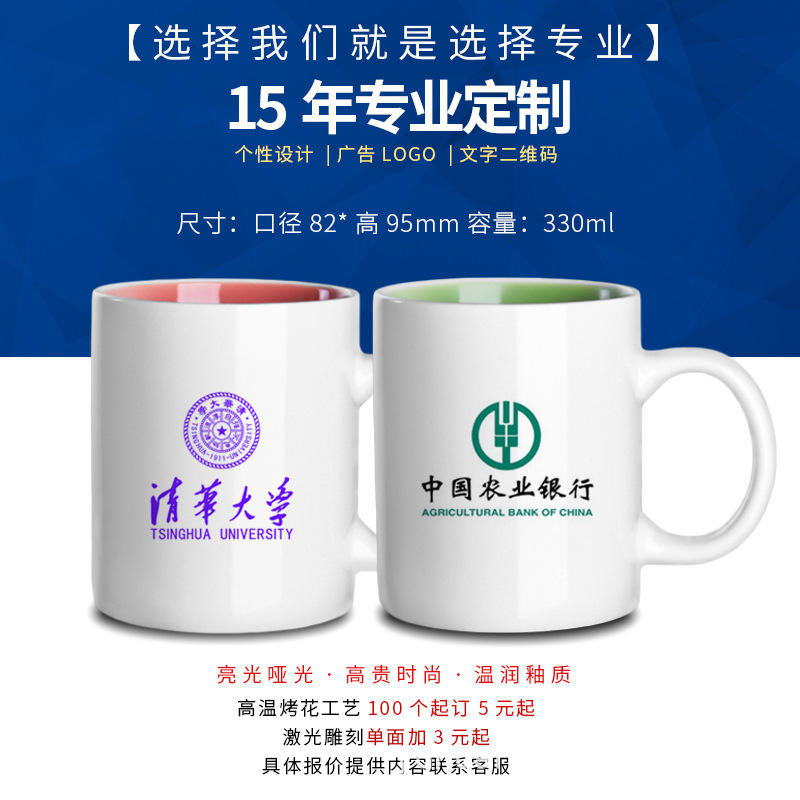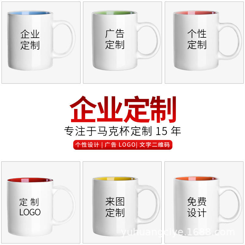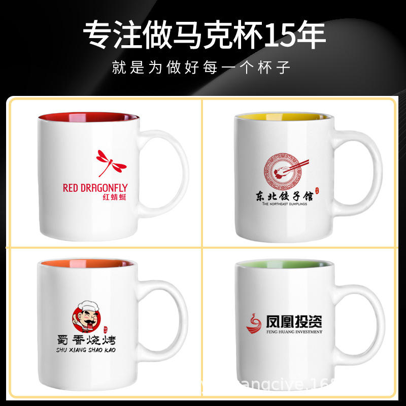แก้วเซรามิกแบบกำหนดเองพร้อมหูจับ 330 มล. สีพื้น พิมพ์โลโก้ สำหรับของขวัญธุรกิจ ขายส่ง