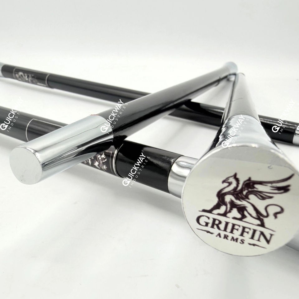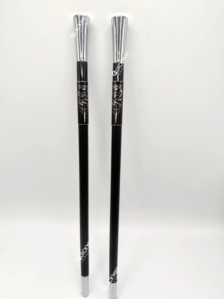 แท่งขบวนพาเหรดสำหรับพิธีแบบกำหนดเองแท่งโลหะสลักสีดำและสีเงินสำหรับใช้ในการเดินขบวน