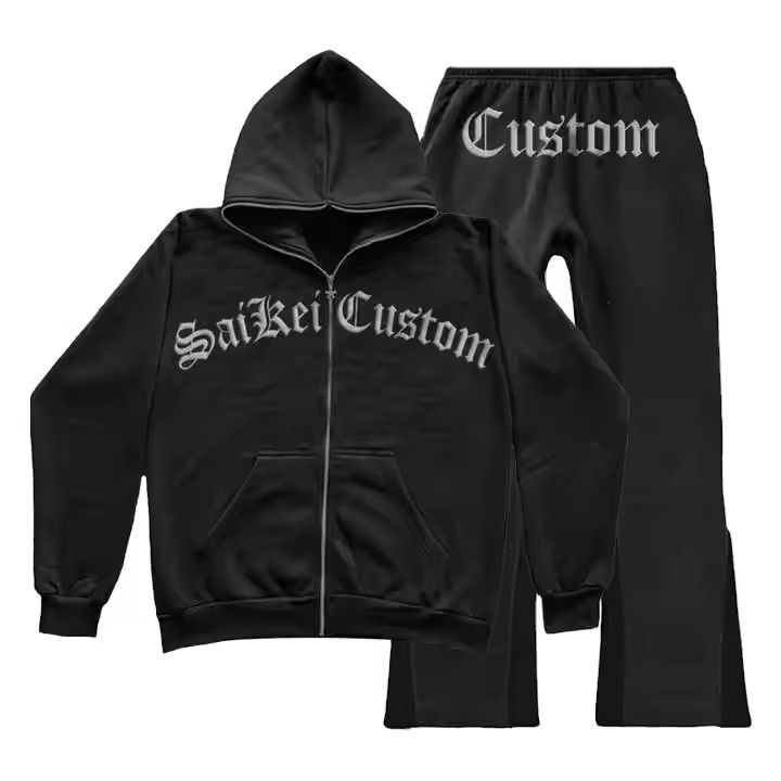 ชุดวอร์มปักลายแบบกำหนดเอง 500 GSM ทรงขาตรง ผ้าฟลีซคอตตอน 100% ชุดออกกำลังกาย เสื้อฮู้ดดี้และกางเกงขายาวสำหรับผู้ชาย