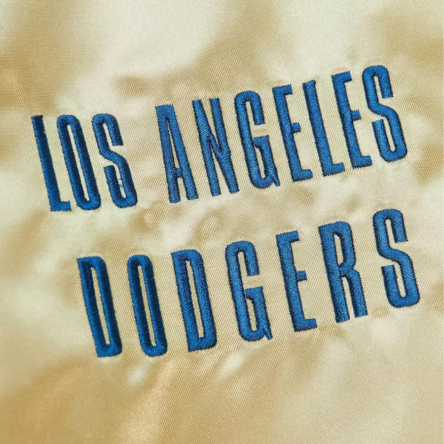 แจ็คเก็ตวาร์ซิตี้ผ้าซาตินสีแชมเปญทองแบบสั่งทำพิเศษ แจ็คเก็ตบอมเบอร์ซิปพรีเมียม ขายส่ง เสื้อเบสบอลชาย ชุดกีฬา เสื้อโค้ท