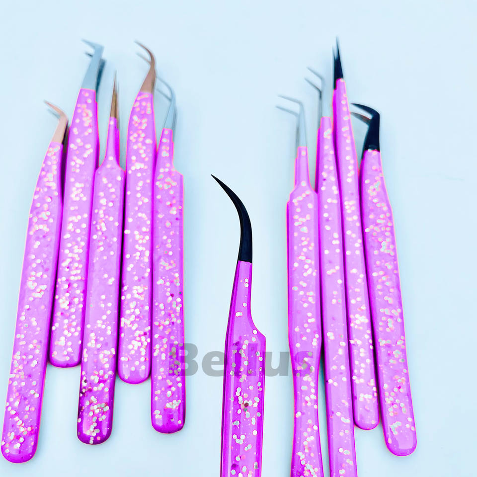 แหนบขนตาปลอมแบบปรับแต่งได้แหนบปลายไฟเบอร์สำหรับต่อขนตาด้วยกล่องและแบรนด์บูตปลายโค้งตรง