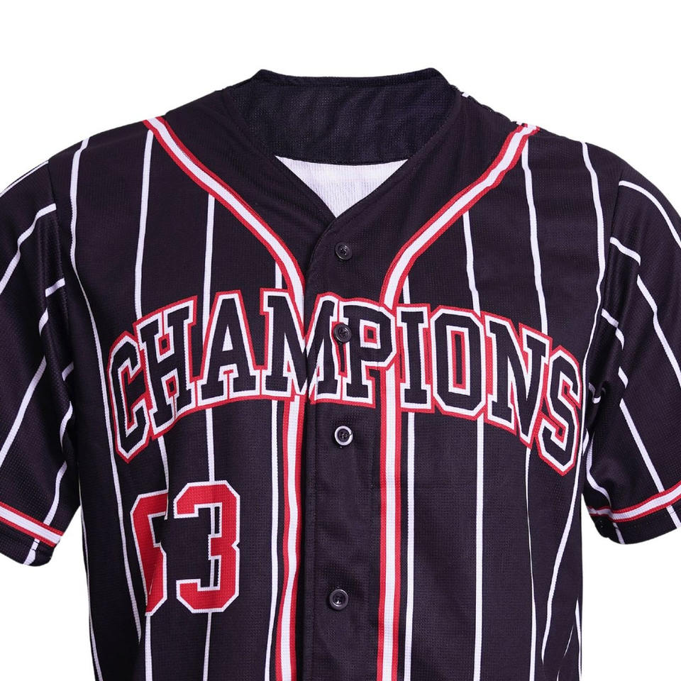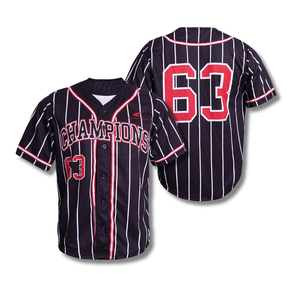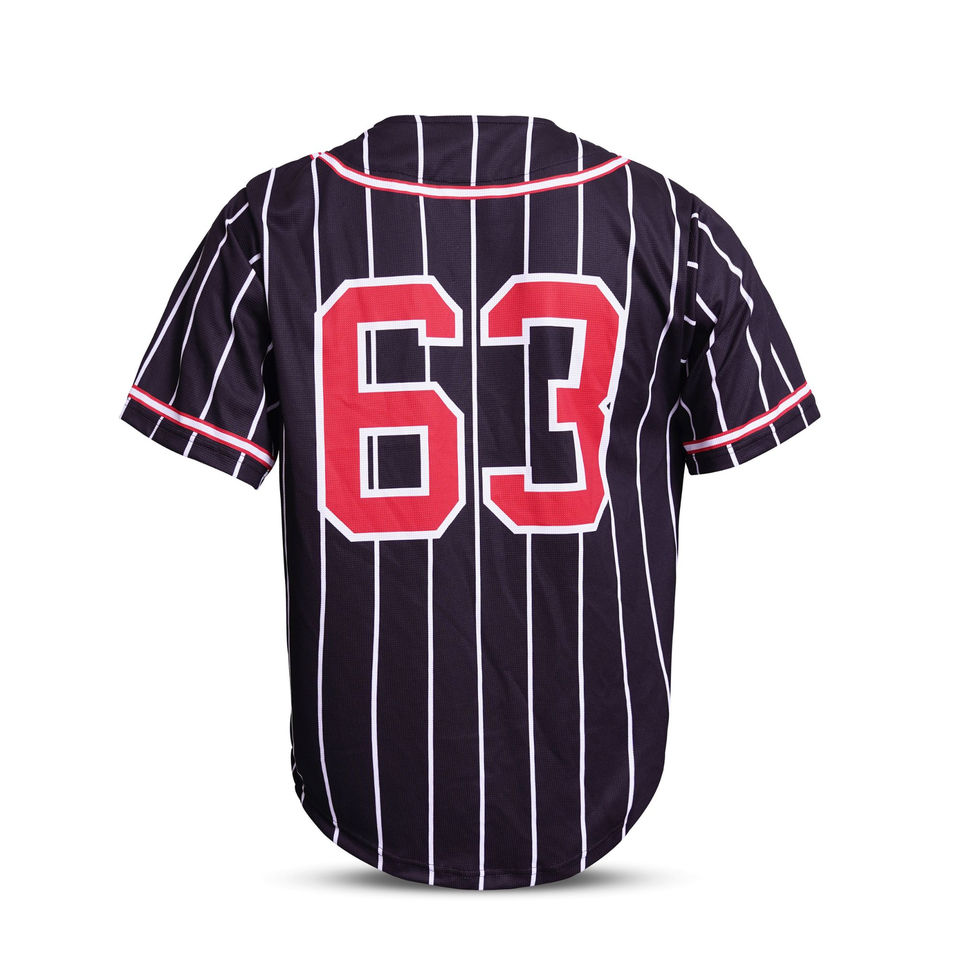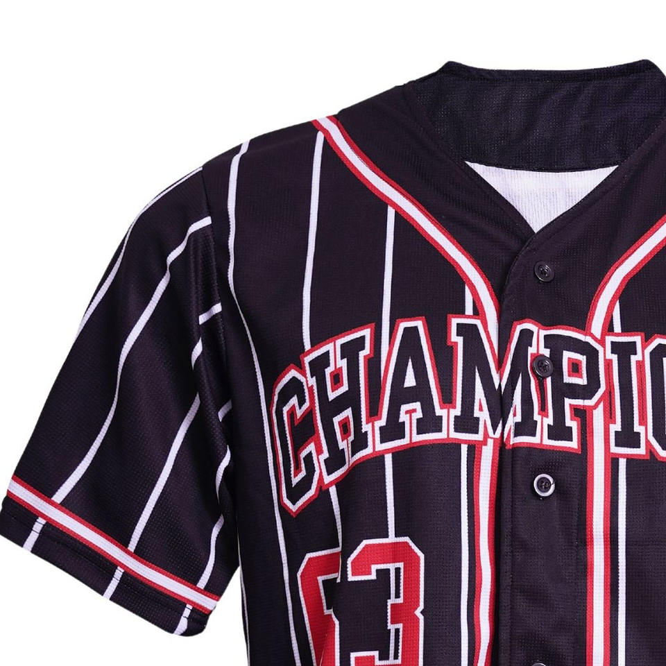 เสื้อเบสบอลเปล่าราคาถูกแบบกำหนดเอง ดีไซน์สีดำ ปักโลโก้ด้วยเทคนิคซับลิเมชั่น เสื้อเบสบอล