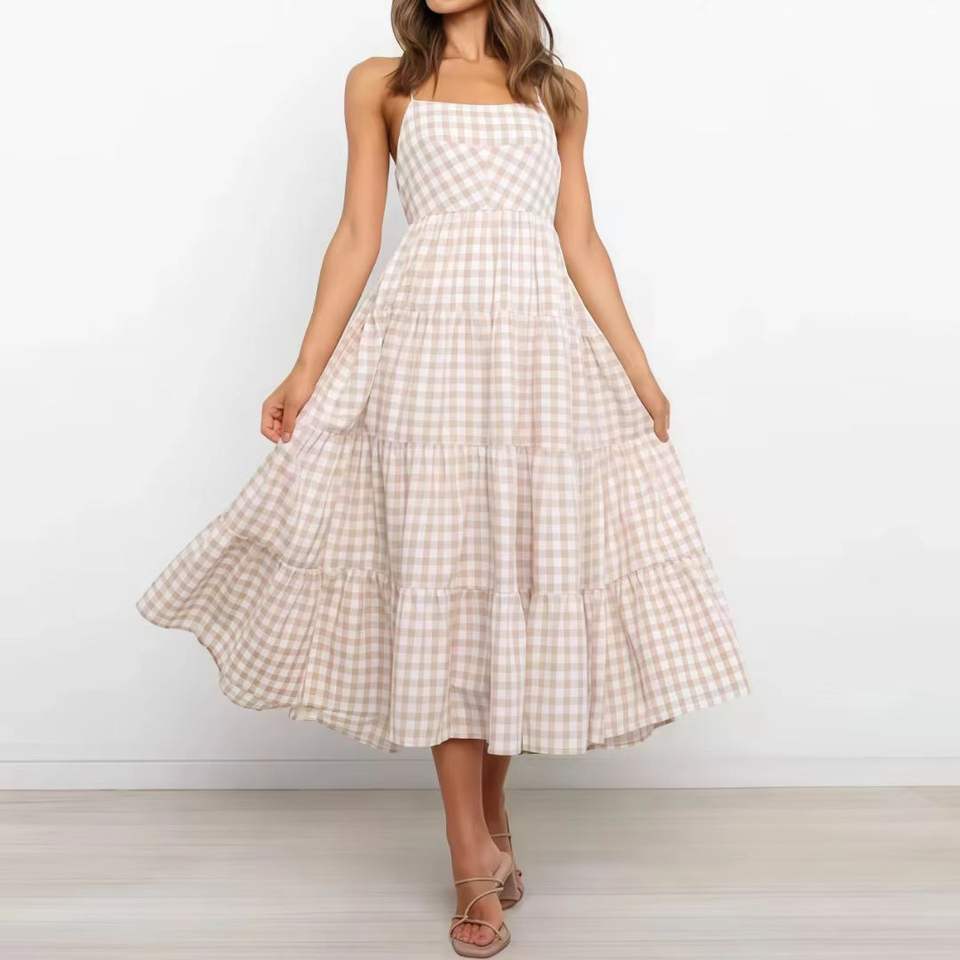 ชุดเดรสชายหาดยาวแบบจีบชั้นๆ ผ้าชีฟองเนื้อแน่น ตกแต่งระบาย ไหล่เดี่ยว เปิดหลัง เอวสูง สไตล์ลำลองหรูหราสำหรับผู้หญิง ฤดูร้อน