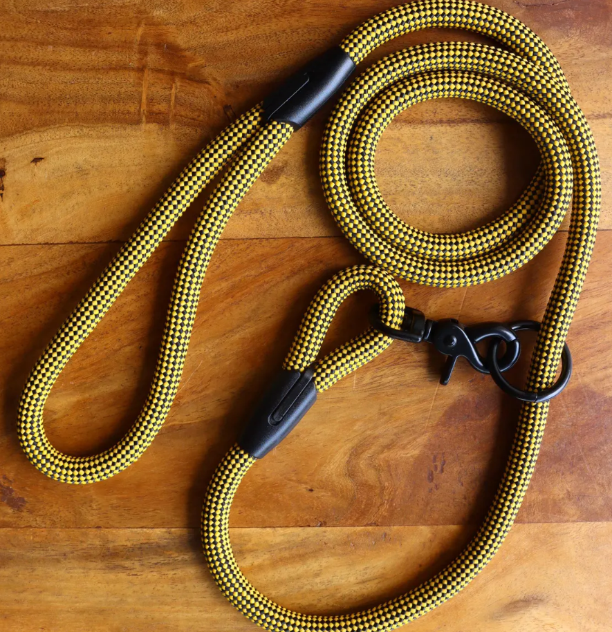 สายจูงสุนัขทรงกลม10มม. สีดำและเหลืองลายตารางหมากรุกแบบกำหนดเองสำหรับสุนัขตัวเล็กและตัวใหญ่