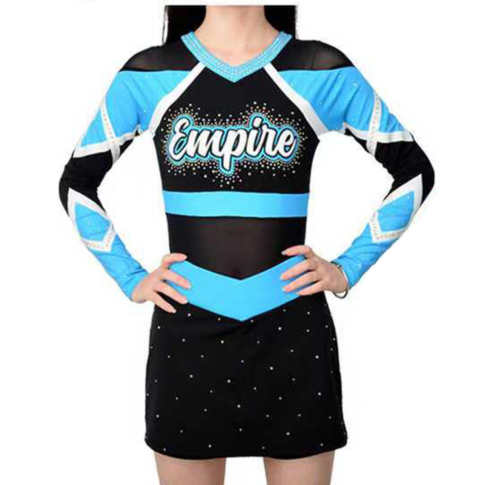 ชุดเชียร์ลีดเดอร์แบบกำหนดเองประดับด้วยคริสตัลสำหรับการแสดงสำหรับทีมเชียร์ลีดเดอร์