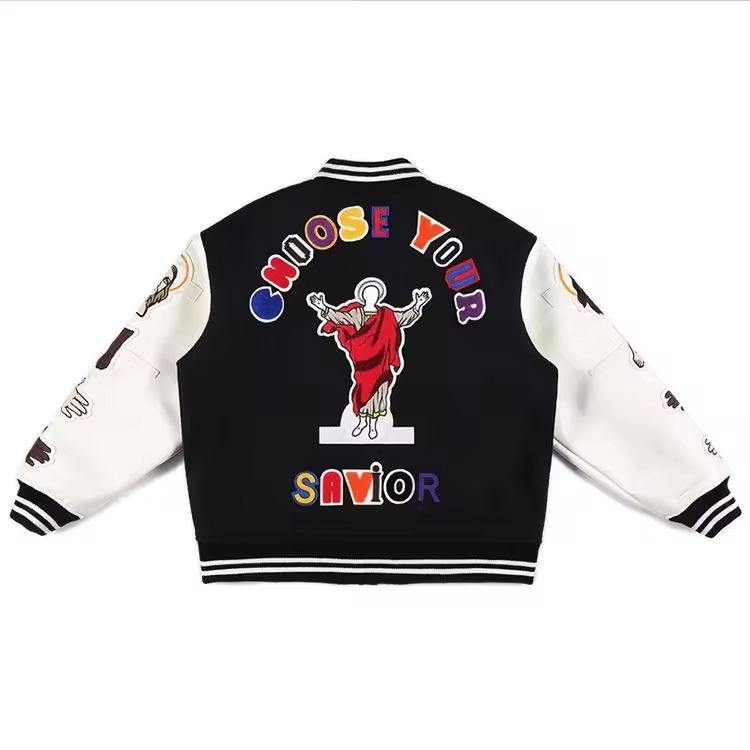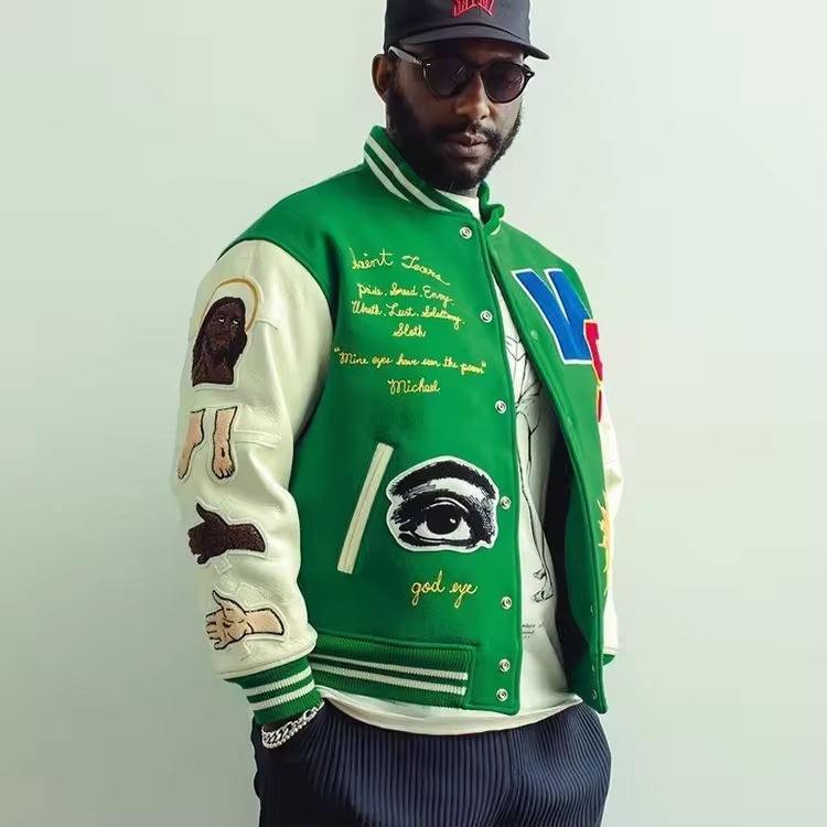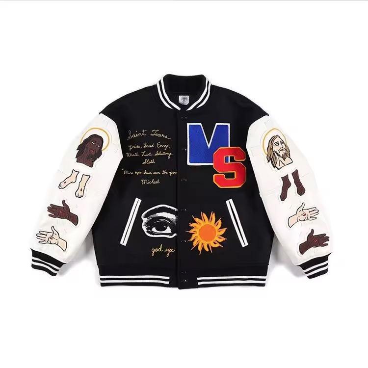 แจ็กเก็ตเบสบอลฤดูหนาวปักโลโก้กำมะหยี่ออกแบบได้ตามต้องการสำหรับผู้ชาย-ผ้าใบทอลำลองไฮสตรีทพร้อมขาตั้งแขนหนัง